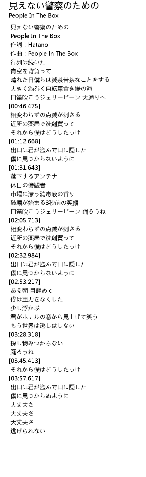 | [00:00.000] | 見えない警察のための |