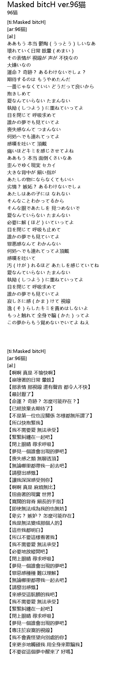 | [02:26.81] | 汚(けが)れるほど あたしを感じていてね |