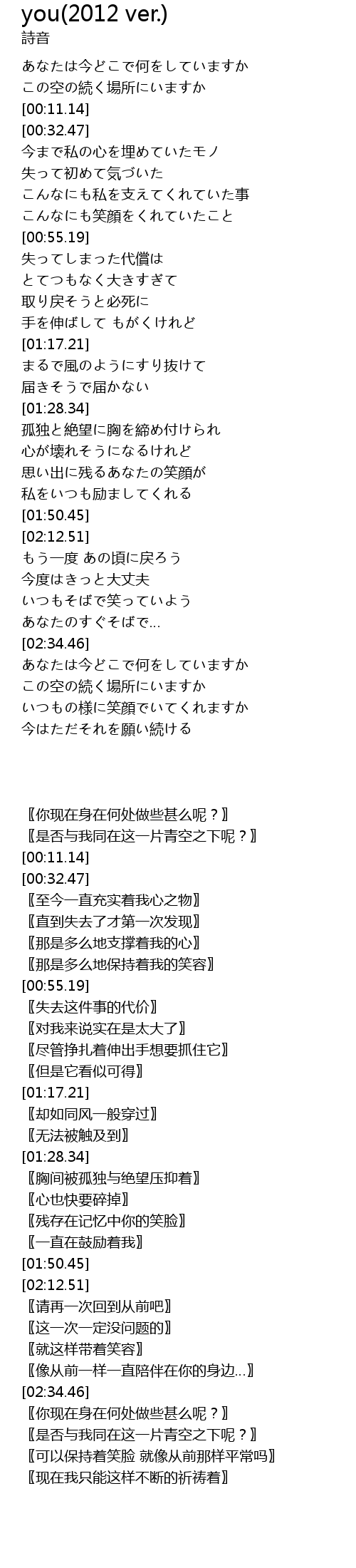 | Song | you(2012 ver.) |