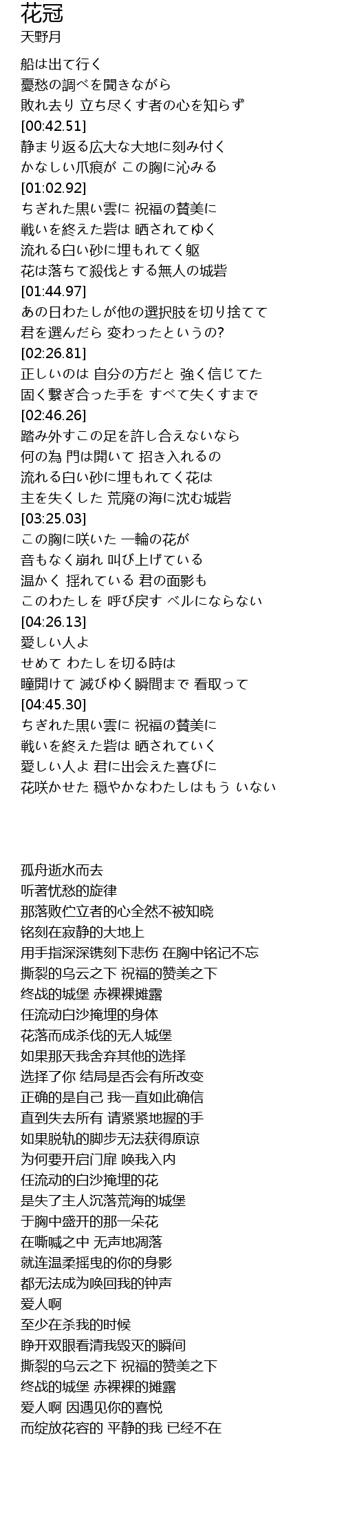 | [05:17.54] | 花咲かせた 穏やかなわたしはもう いない |