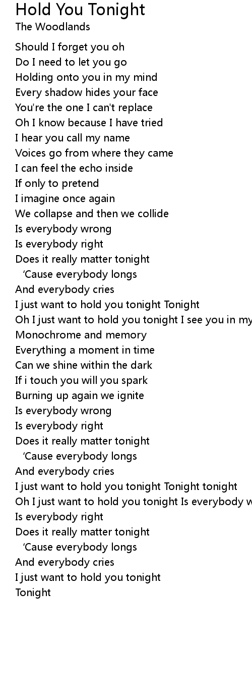 | Oh I just want to hold you tonight Is everybody wrong | |