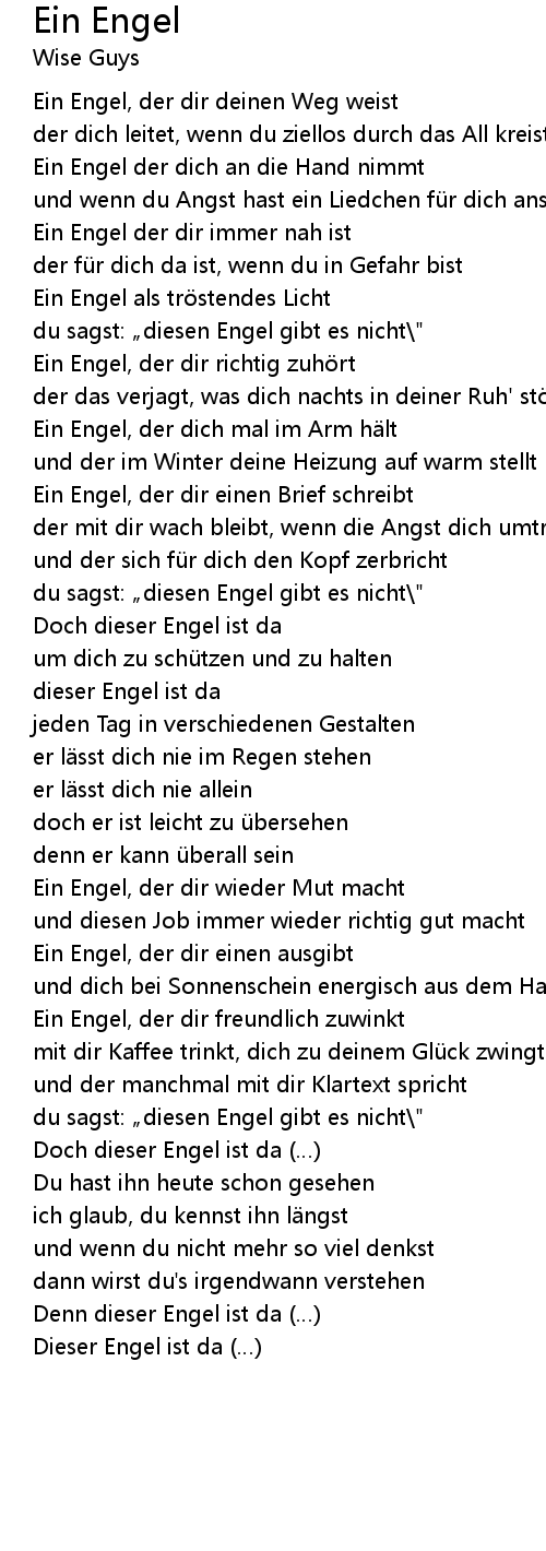 | du sagst: „diesen Engel gibt es nicht\" | |