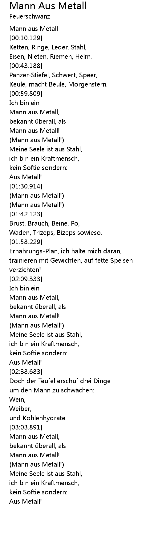 | [03:14.563] | Meine Seele ist aus Stahl, |
