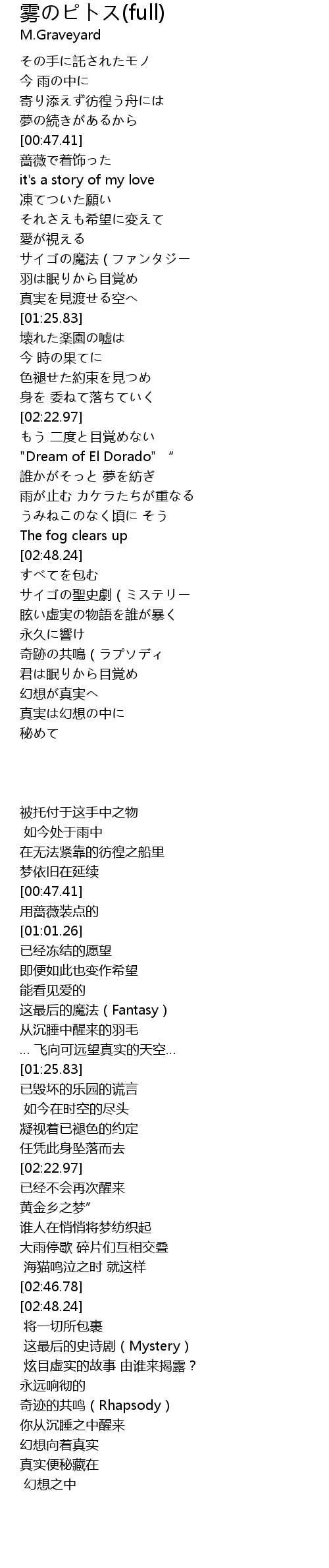 | [02:35.61] | 雨が止む カケラたちが重なる |