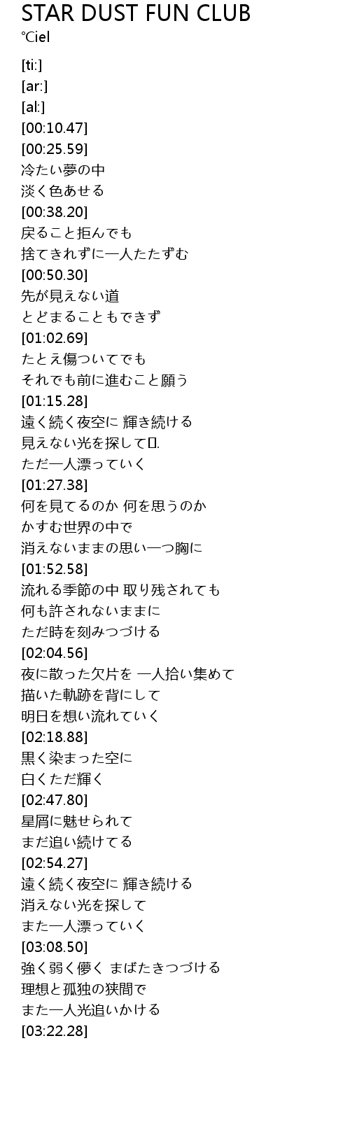 | [02:48.37] | 星屑に魅せられて |