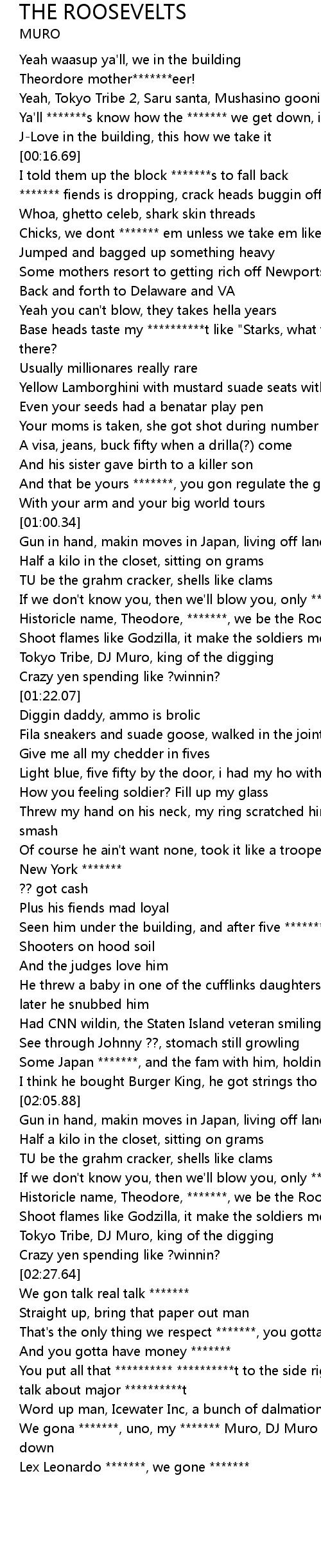 We gona *******, uno, my ******* Muro, DJ Muro rather, Saru hold it down |