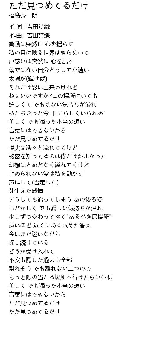 | [02:35.886] | どうしても追ってしまう あの後ろ姿 |