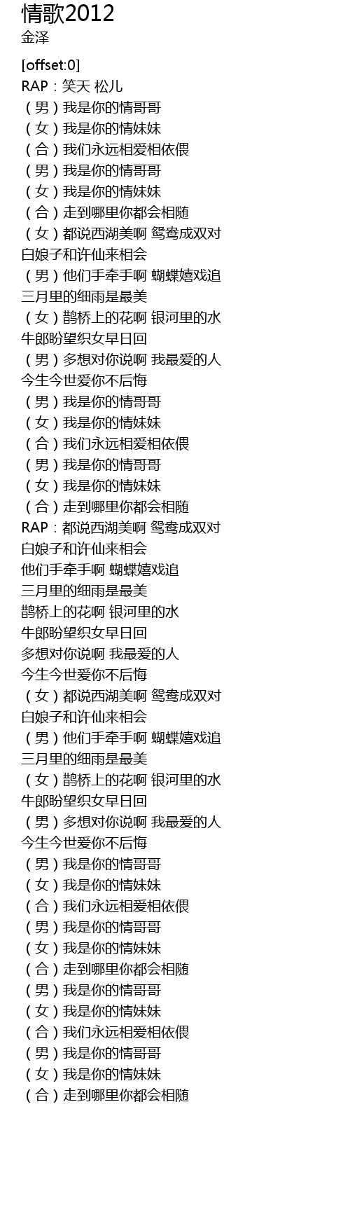 | [03:34.77] | (合)我们永远相爱相依偎 |