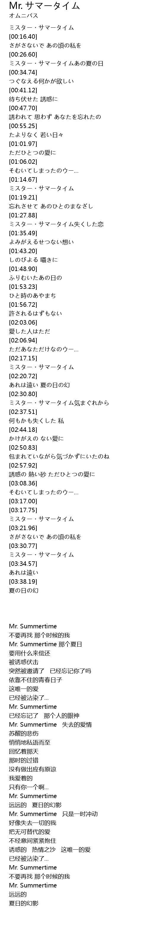 ミスター・サマータイム失くした恋 |