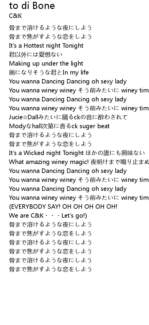 | You wanna winey winey そう前みたいに winey time | |