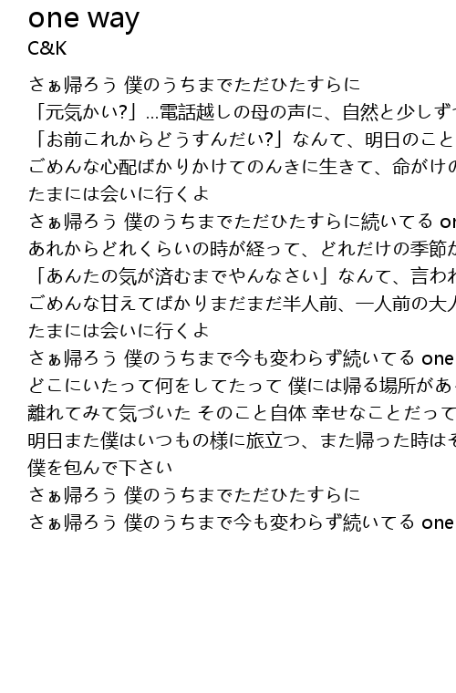 | さぁ帰ろう 僕のうちまで今も変わらず続いてる one way |
