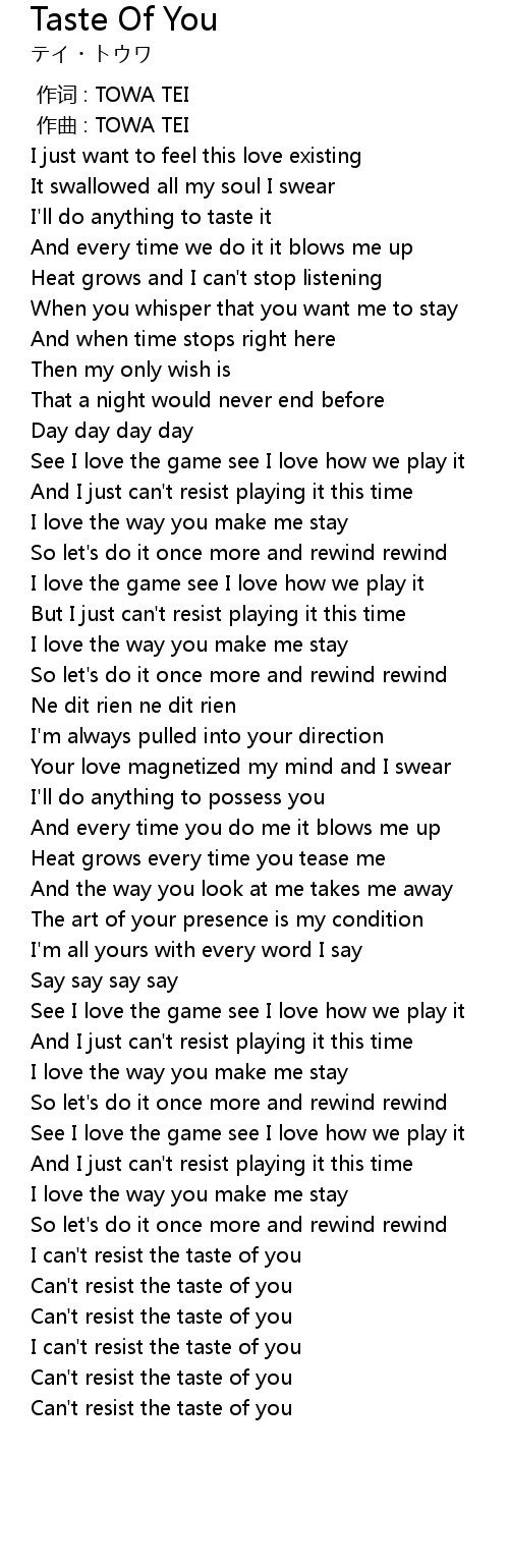 | [03:53.750] | Can' t resist the taste of you |