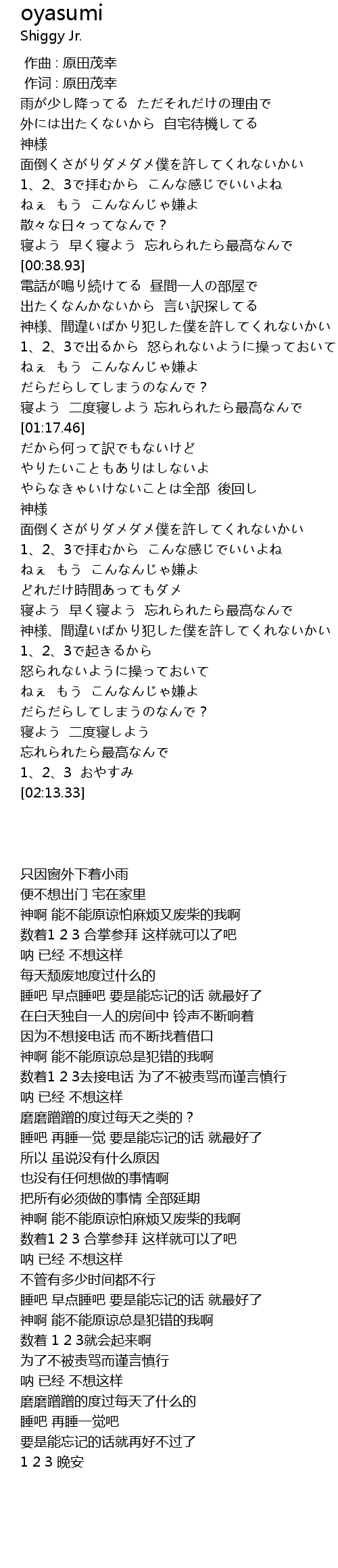 | [02:09.62] | 1、2、3 おやすみ |