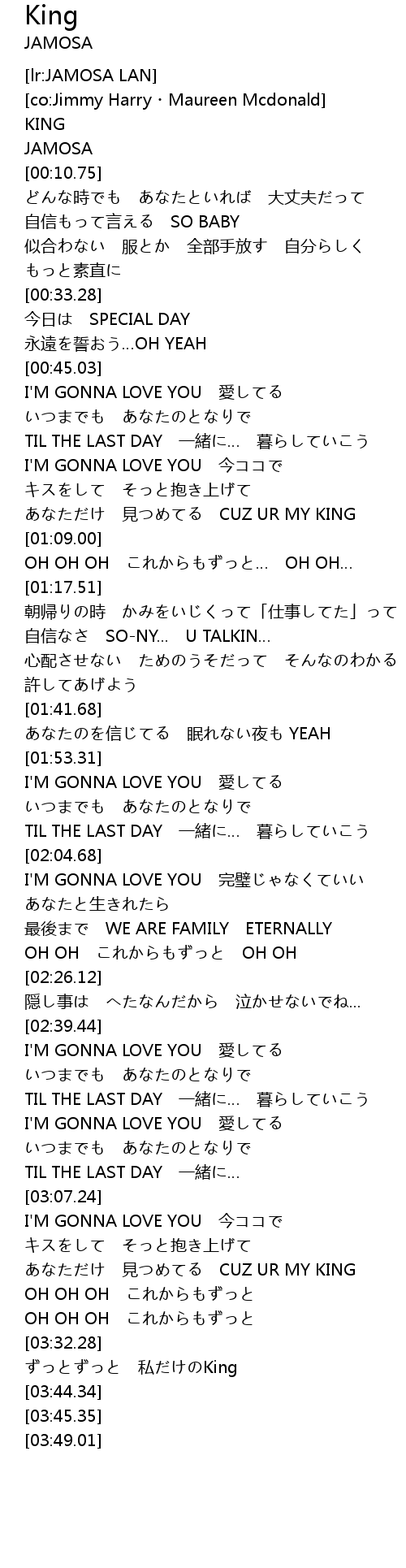 | [03:37.36] | ずっとずっと 私だけのKing |