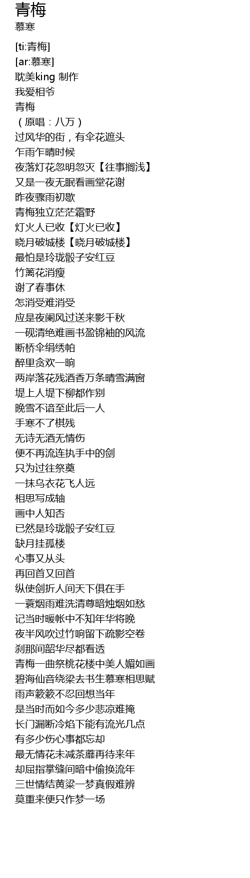 | [04:05.367] | 青梅一曲祭桃花楼中美人媚如画 |
