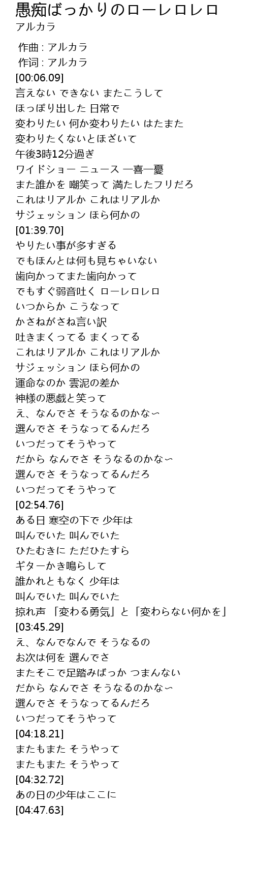 | [00:01.00] | 作词 : アルカラ |