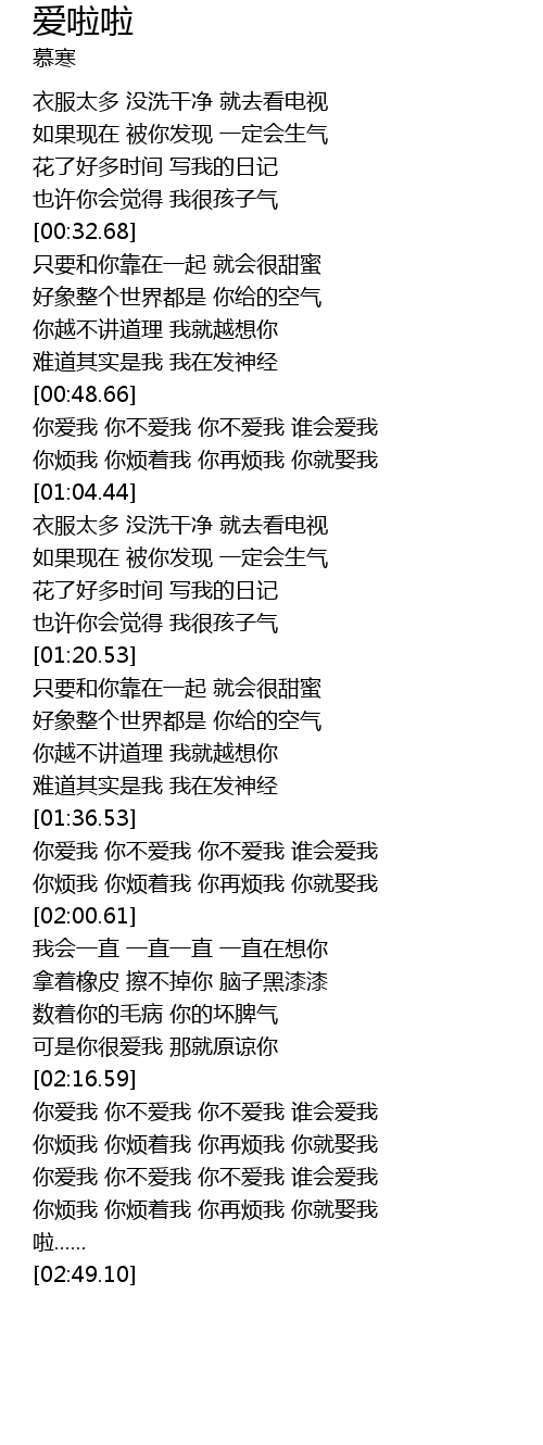 | [00:49.08] | 你爱我 你不爱我 你不爱我 谁会爱我 |
