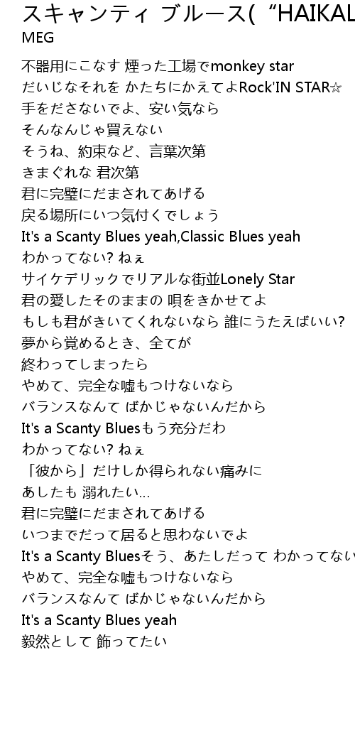 | [03:35.44] | It's a Scanty Bluesそう、あたしだって わかってない? |