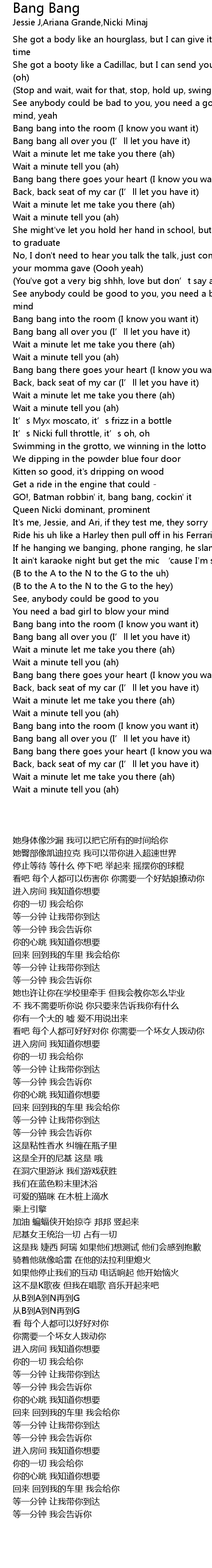 | [02:24.38] | Bang bang into the room I know you want it |