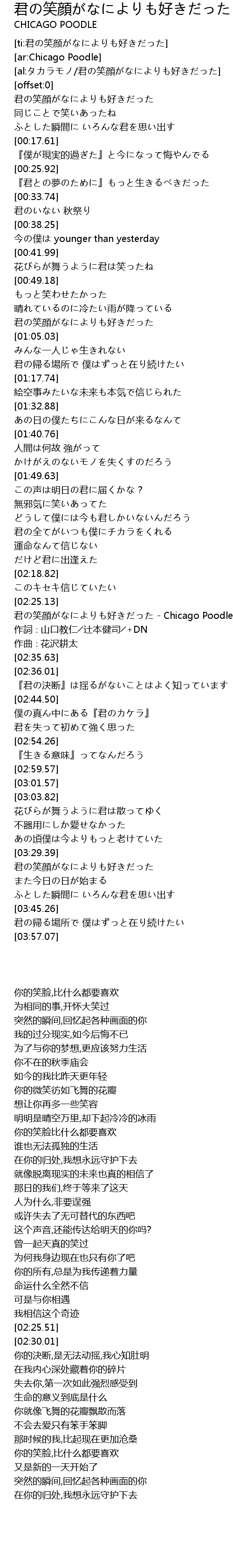 | [02:25.51] | 君の笑顔がなによりも好きだった - Chicago Poodle |