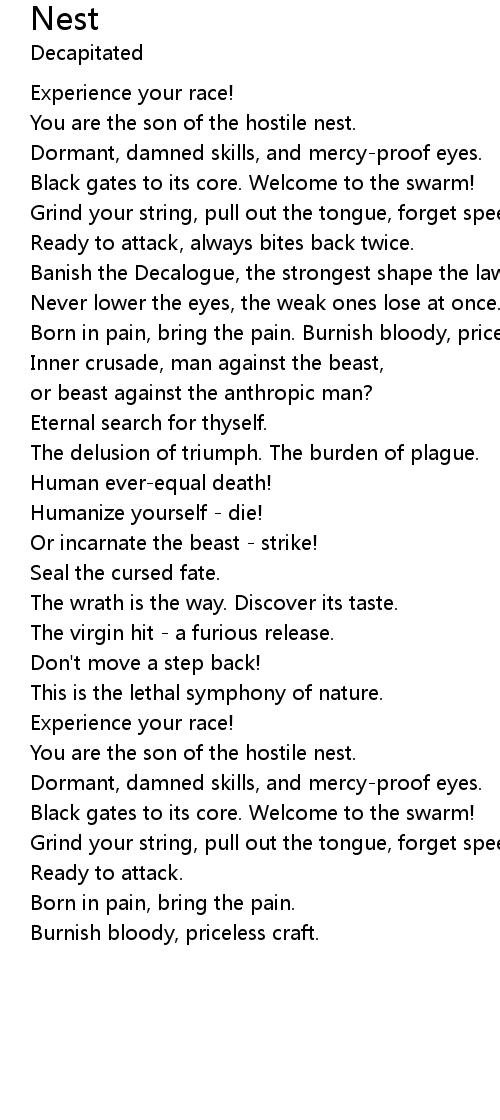 Grind your string, pull out the tongue, forget speech, impale claws. |
