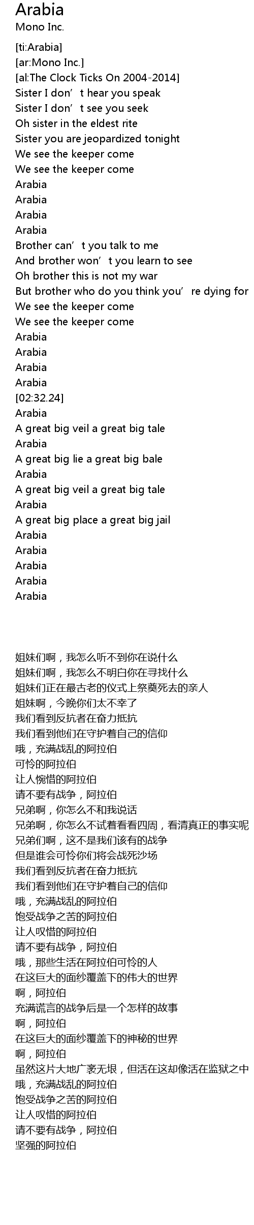 | [02:18.73] | Arabia |