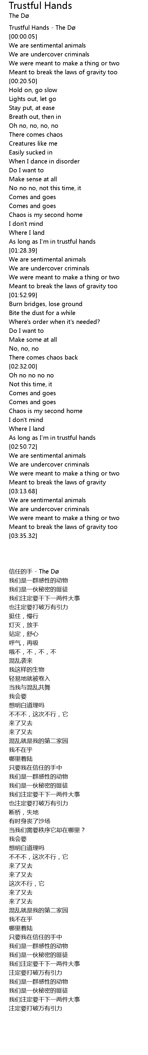 | [00:00.00] | Trustful Hands - The Dø |