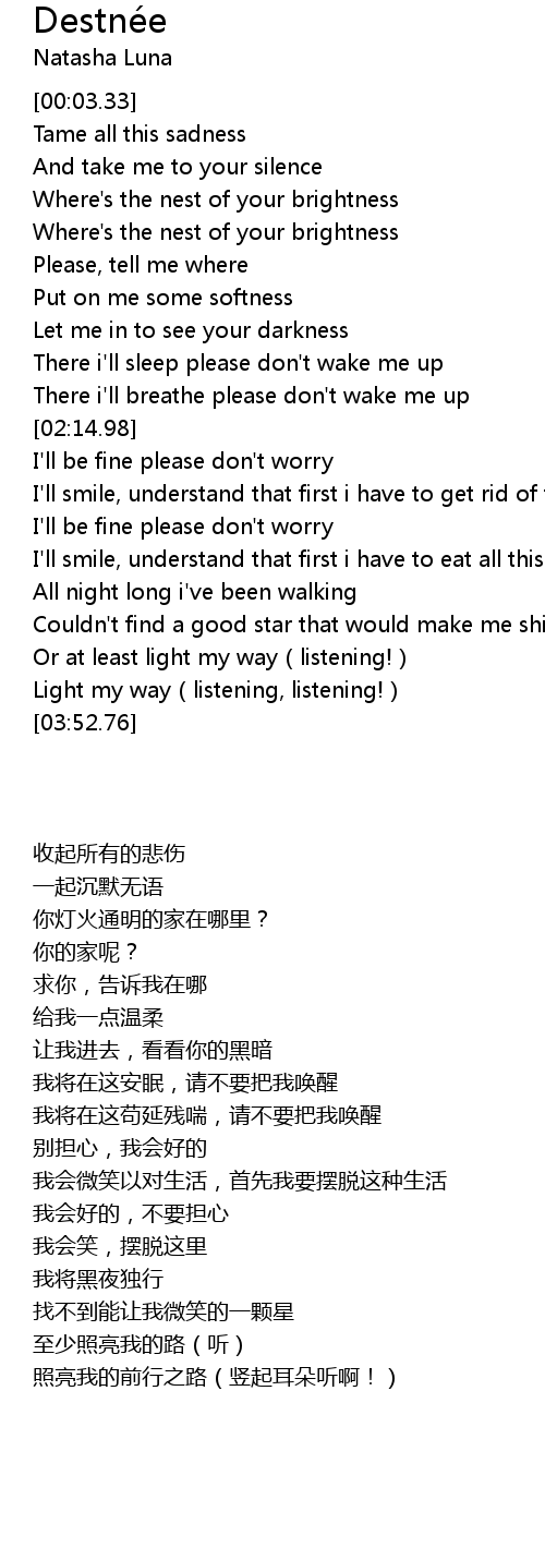 | [02:03.76] | There i'll breathe please don't wake me up |