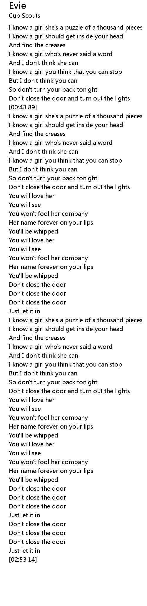 Don't close the door and turn out the lights |