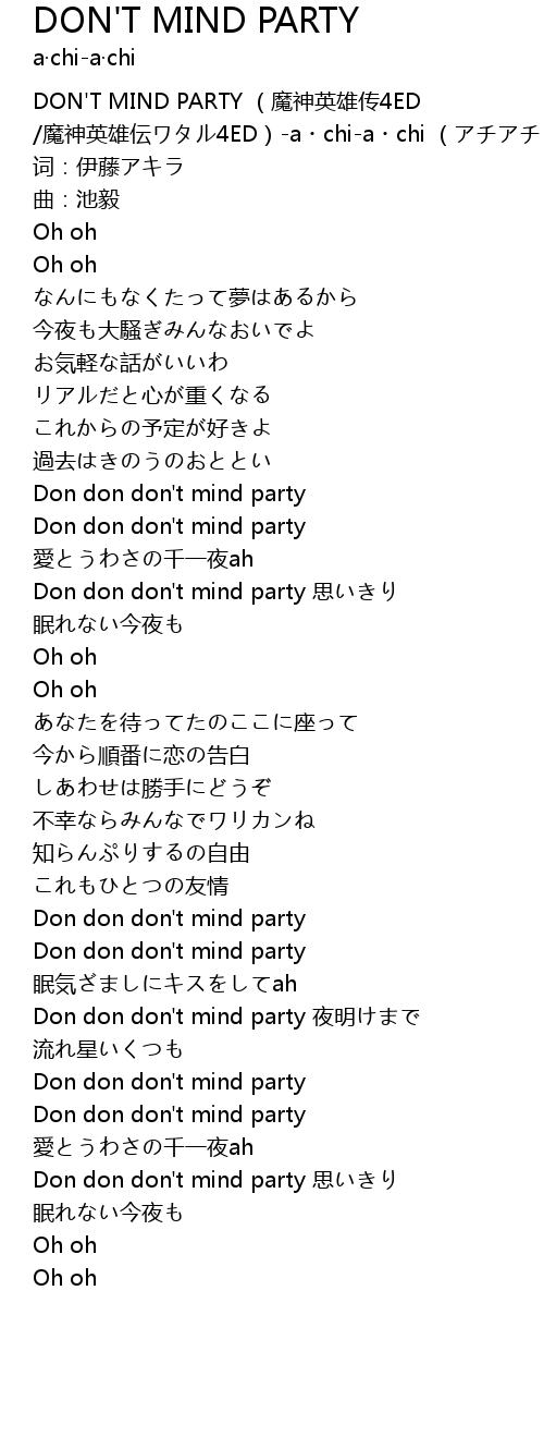 | [03:01.895] | Don don don' t mind party sī |