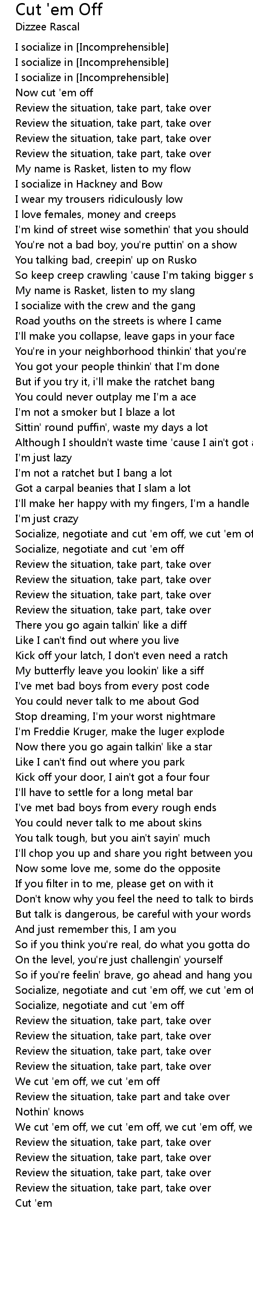 We cut 'em off, we cut 'em off, we cut 'em off, we cut 'em off |