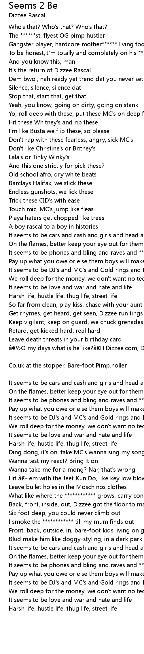 | Back, front, inside, out, Dizzee got the floor to make a boy white out | |