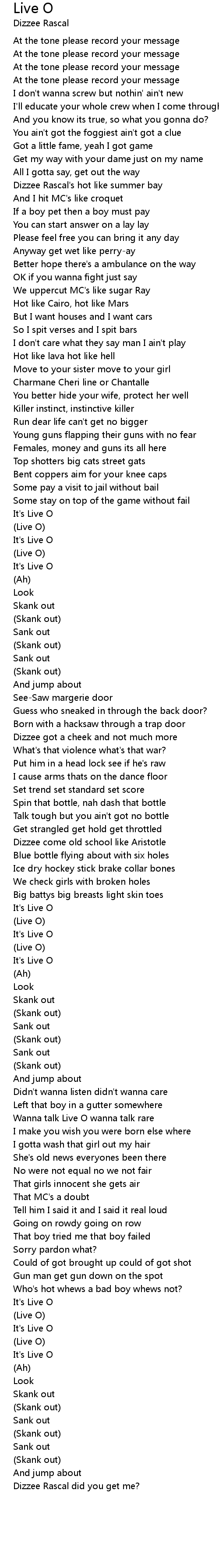 Live O Lyrics