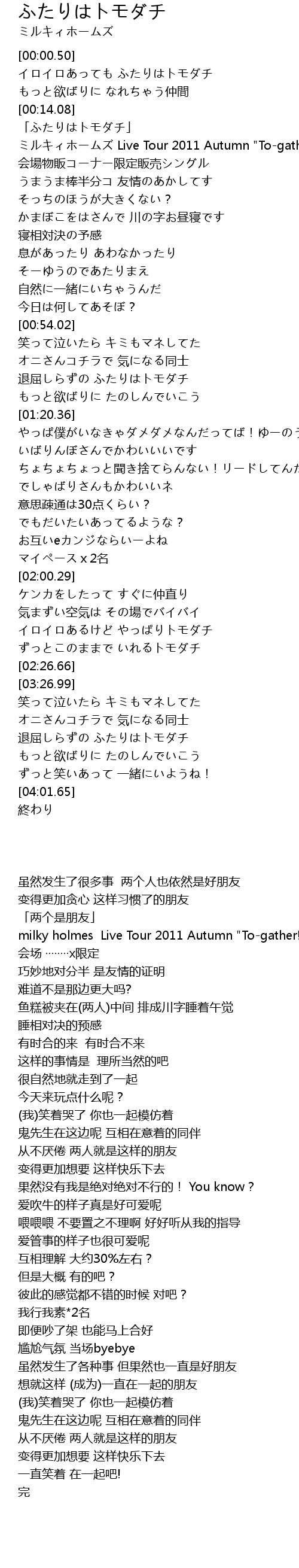 | [00:18.50] | 「ふたりはトモダチ」 |