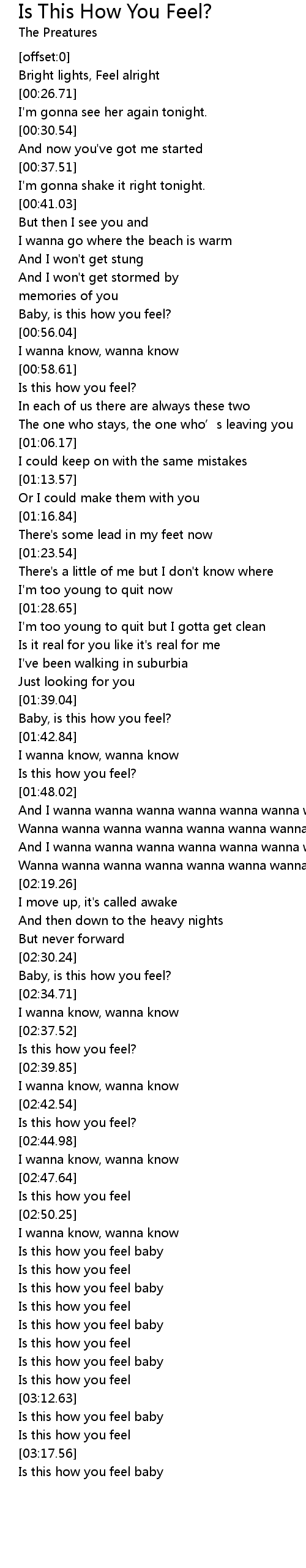 | [03:00.53] | Is this how you feel |
