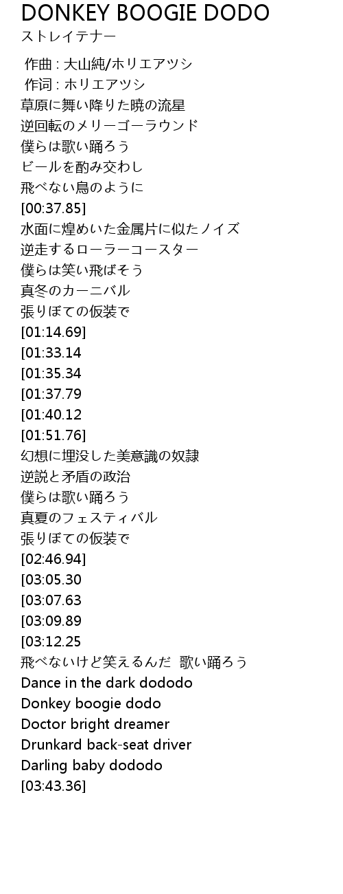 | [01:42.28][01:33.14] | Donkey boogie dodo |