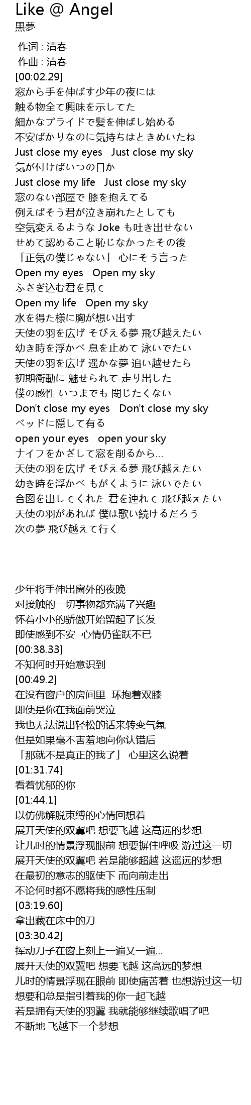 | [00:38.33] | Just close my eyes Just close my sky |