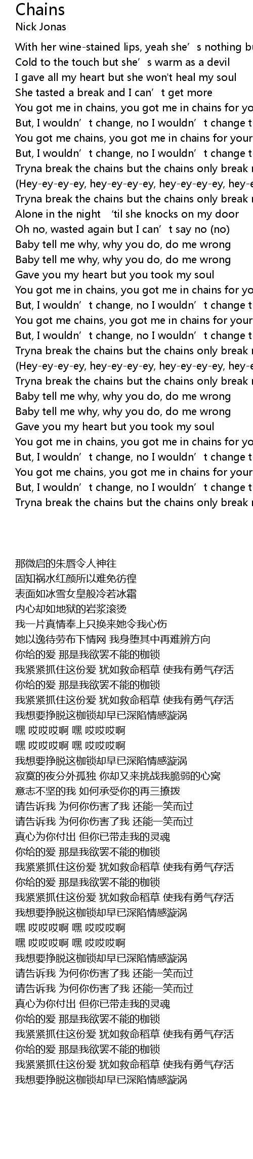 | [03:03.000] | You got me chains, you got me in chains for your love |