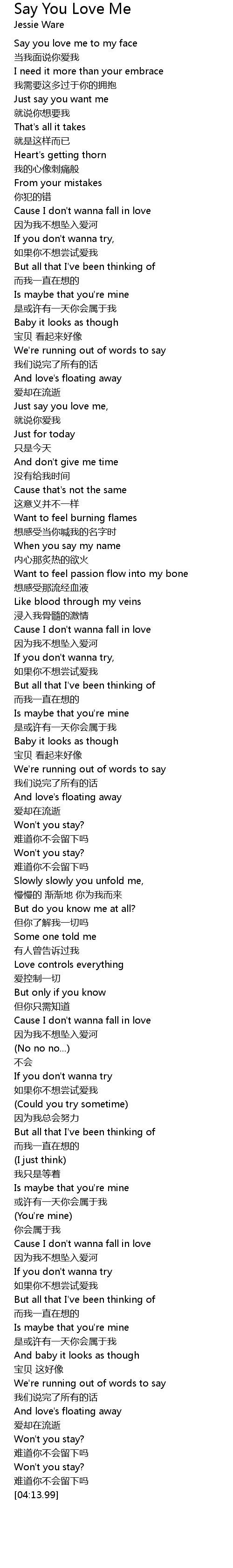 | [01:17.42] | jiù shuō nǐ ài wǒ |