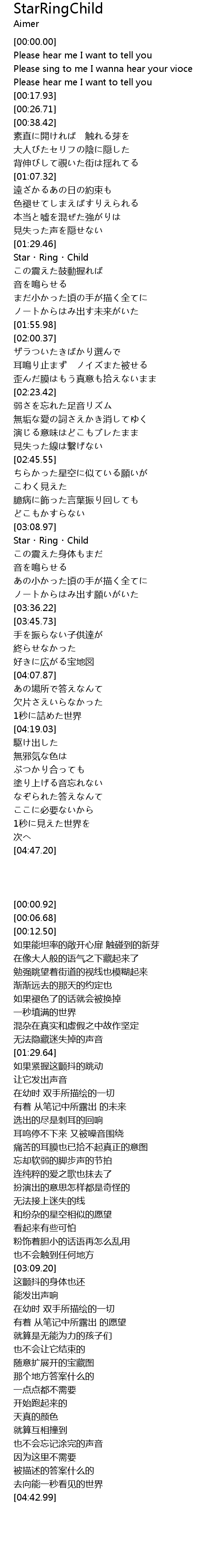 | [00:06.68] | Please sing to me I wanna hear your vioce |
