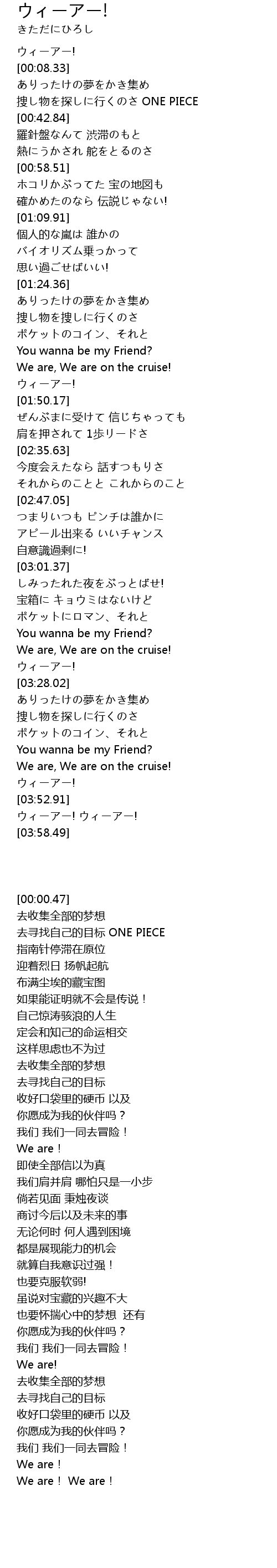 | [00:35.87] | 捜し物を探しに行くのさ ONE PIECE |