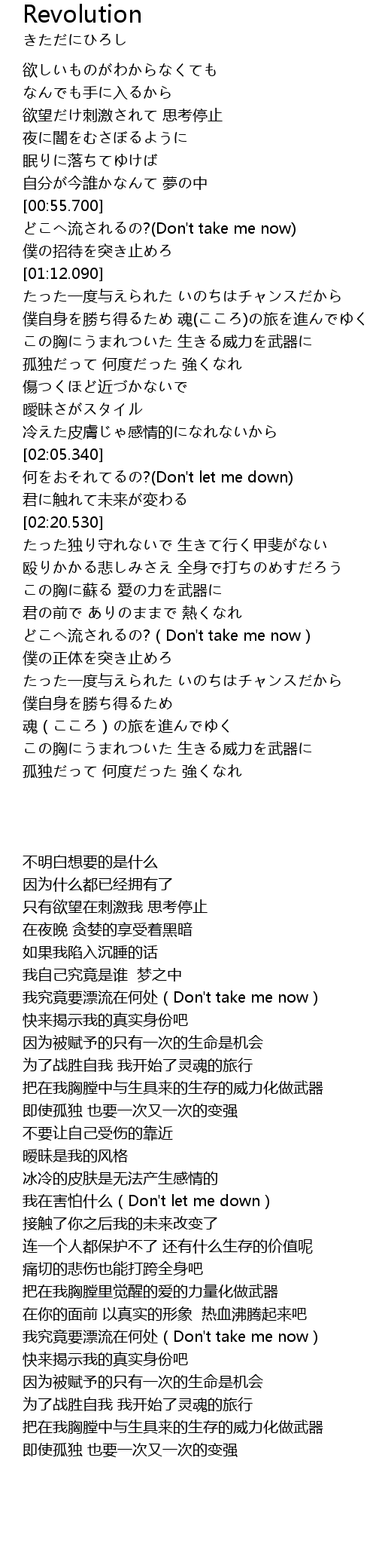 | [02:05.810] | 何をおそれてるの?(Don't let me down) |