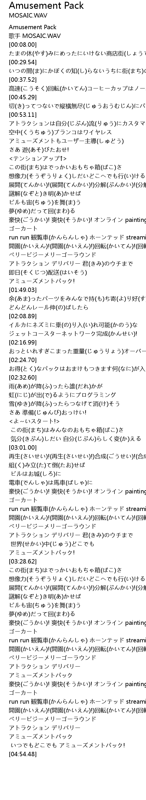 | [04:50.40] | いつでもどこでも アミューズメントパック! |
