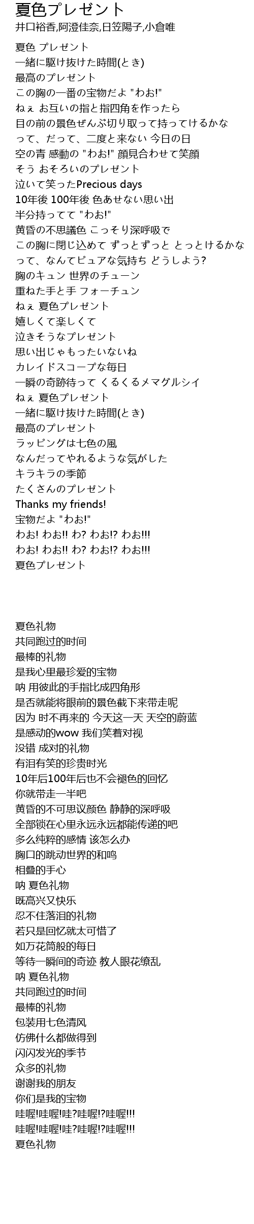 | [00:02:82] | 夏色 プレゼント |
