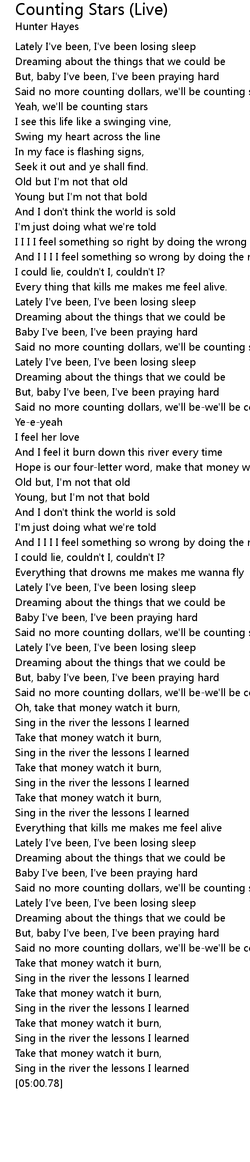 Said no more counting dollars, we'll be-we'll be counting stars |