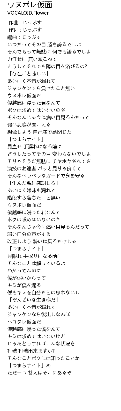 | [00:16.28] | いつだってその目 勝ち誇るでしよ |