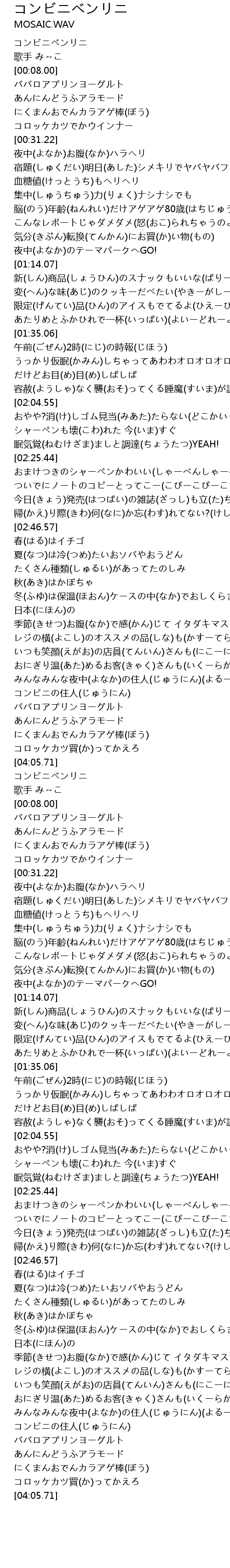 | [00:01.00] | コンビニベンリニ |