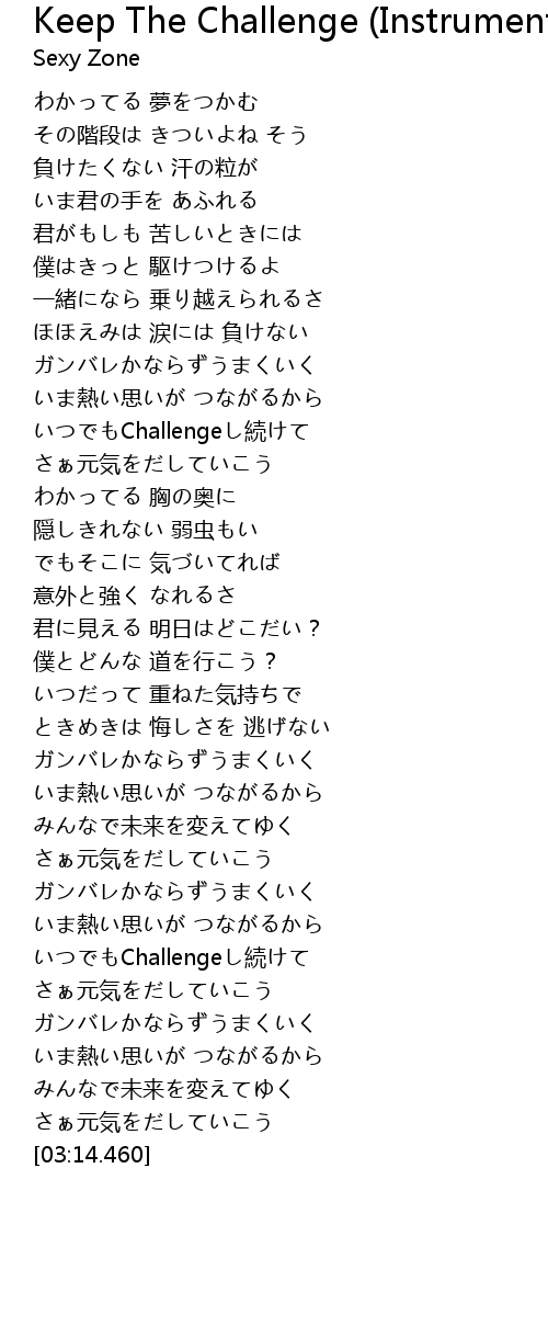 | [02:50.000] | いつでもChallengeし続けて |