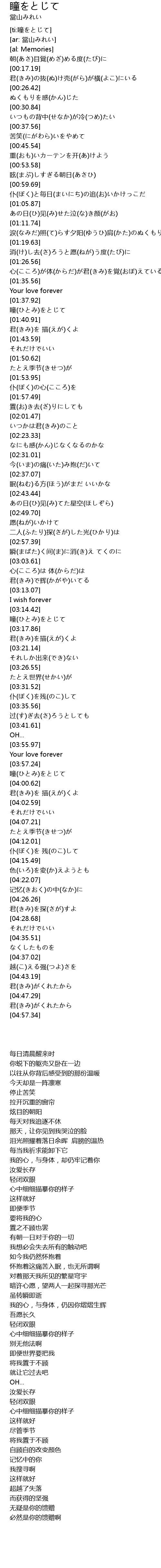 | [04:22.82] | 记忆(きおく)の中(なか)に |
