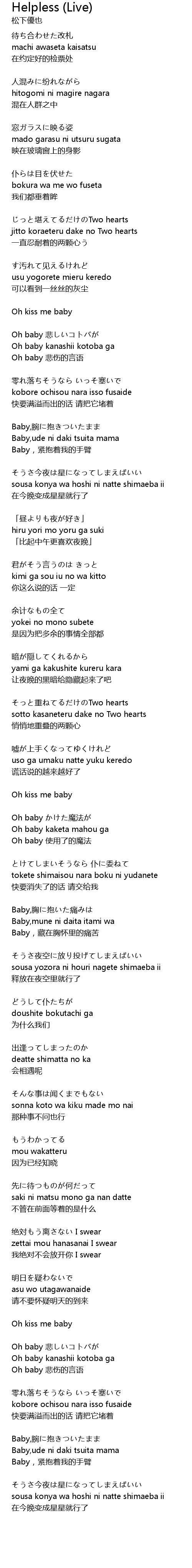 | Oh baby kanashii kotoba ga | |